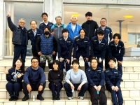 2025年度最後の出勤日に、各部で役割分担をして社内清掃を行 い、その後1年を締めくくる納会が行われました。今年は餅つき 大会も開催され、社員が交代で餅をつきました。