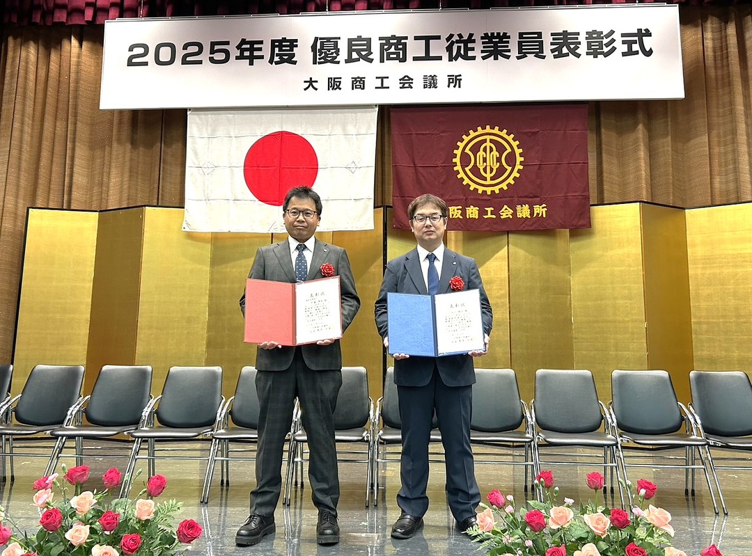 大阪商工会議所より、優良従業員として当社より2名が選ばれ、
